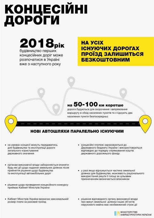 Концесійні дороги – це виключно нові, побудовані з нуля автошляхи, які можуть йти тільки паралельно з вже існуючими дорогами.