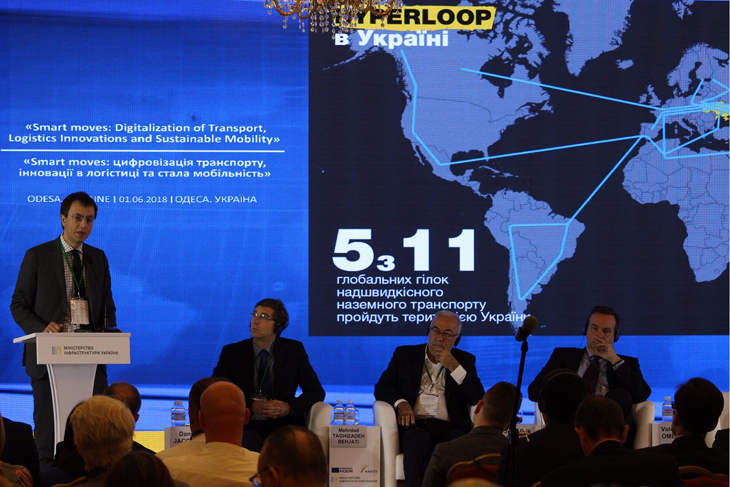 Володимир Омелян акцентував увагу на важливості підтримки ЄС ініціатив Міністерства та необхідності впроваджувати сміливі, надсучасні проекти: «Надзвичайно важливо, щоб проект Hyperloop втілився в життя. Не тільки для того, щоб прийшли абсолютно нові швидкості. Зараз в світі швидкість – це основна цінність і те, за що клієнти готові платити. Але і для того, щоб українські компанії стали надійним постачальником компонентів для нового виду транспорту Hyperloop для всього світу. Ми повинні вийти в цю високотехнологічну нішу, як свого часу зробили з авіацією і космосом. Не лише прорватись, а і зберегти провідні позиції, за рахунок молоді, за рахунок напрацювань попередніх років, за рахунок нашого спільного бажання іти вперед. Ми віримо в інтелектуальні дороги, в автономні автомобілі. Я вдячний Єврокомісії за підтримку нашого наміру зробити Україну майданчиком у напрацюванні новітніх технологій на транспорті. Я буду щасливий, коли наші напрацювання і тестування ляжуть в основу нової сучасної Європи і нових видів транспорту».