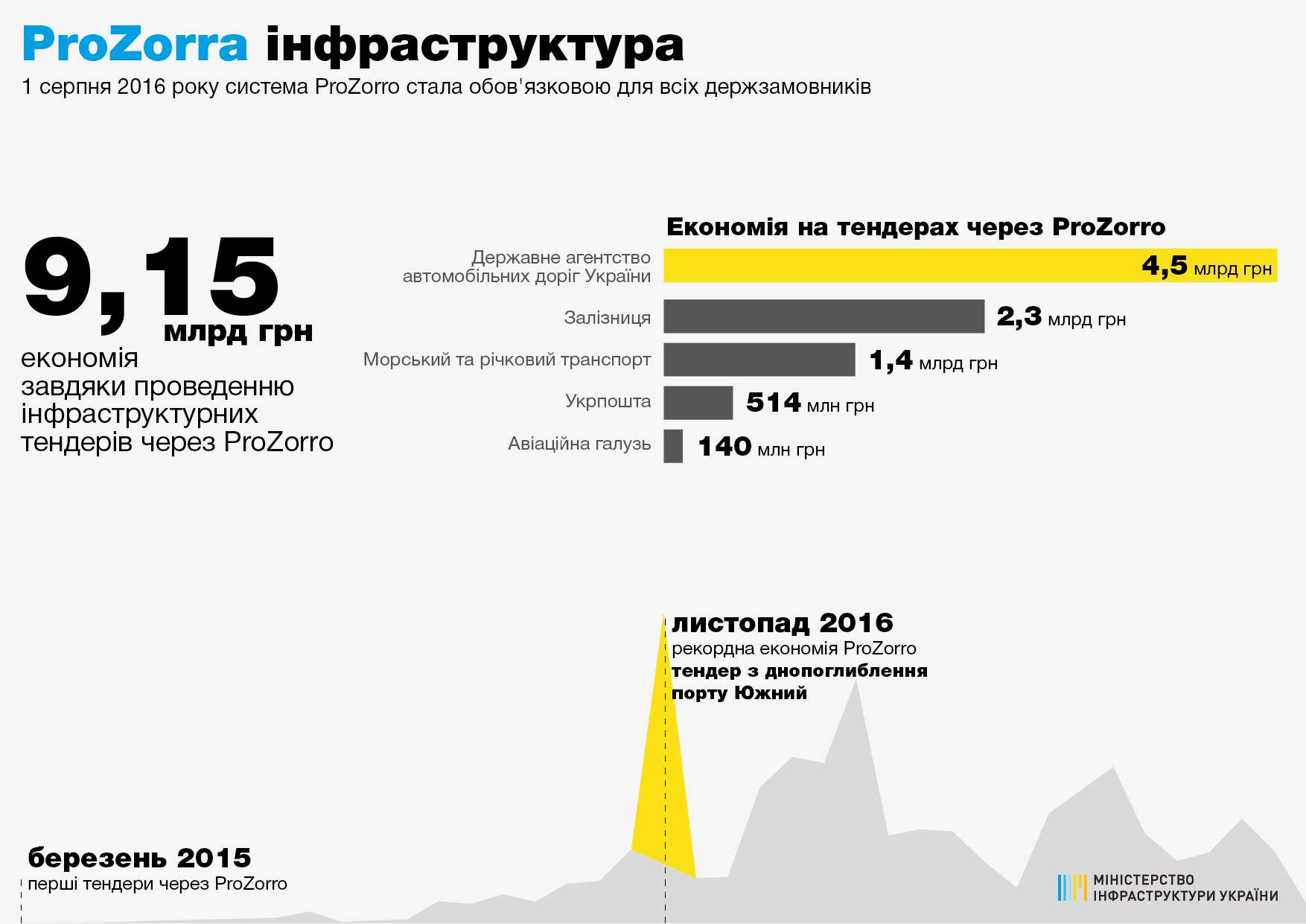9,15 млрд грн - економія завдяки проведенню інфраструктурних тендерів через ProZorro