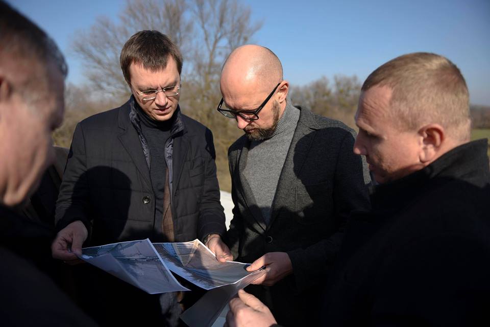 Міністр інфраструктури Володимир Омелян подякував Арсенію Яценюку, який взяв участь в огляді об’єктів, за підтримку фракції «Народний фронт» у Верховній Раді законодавчих ініціатив Міністерства інфраструктури, зокрема, щодо утворення Дорожнього фонду.