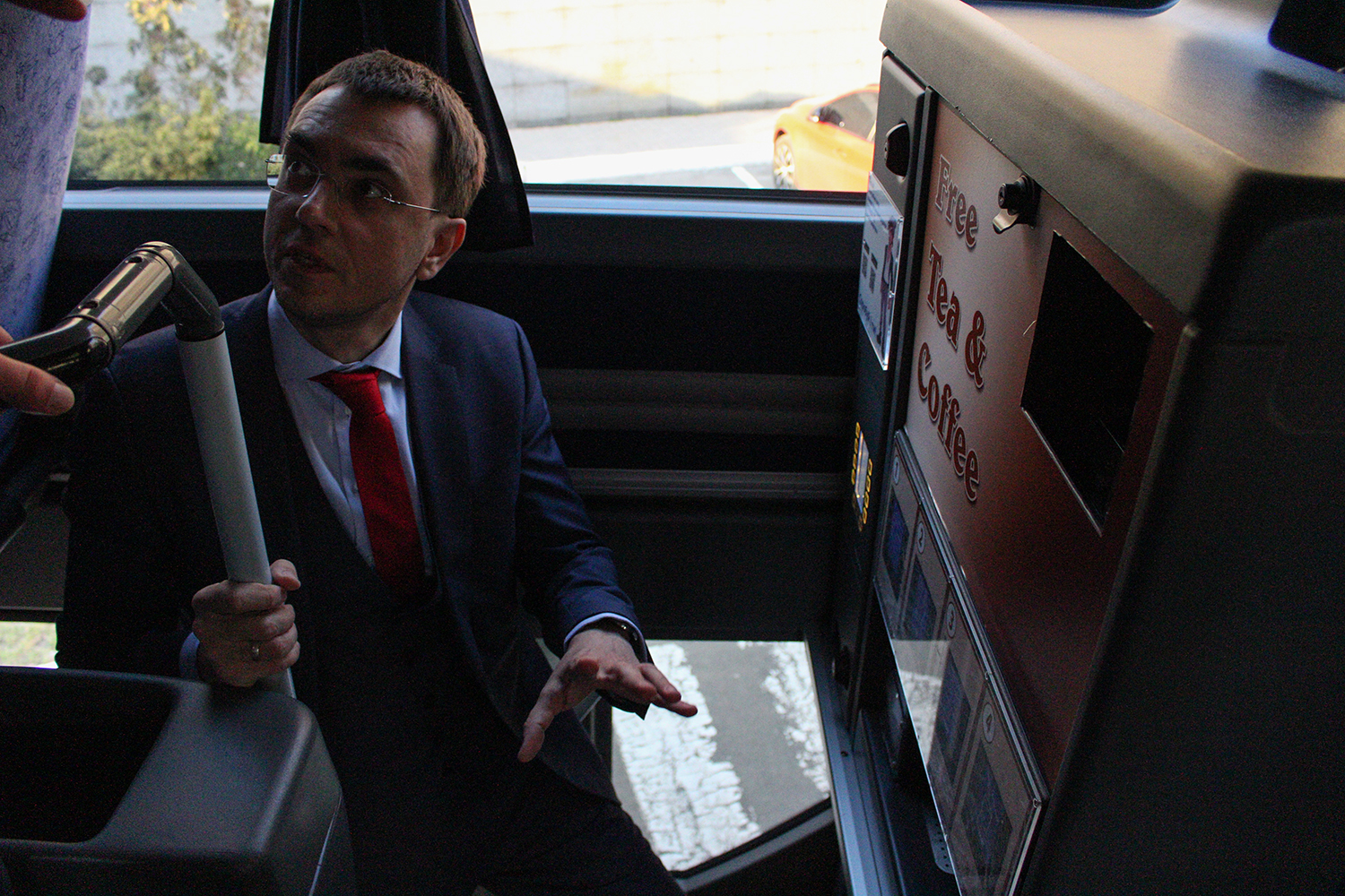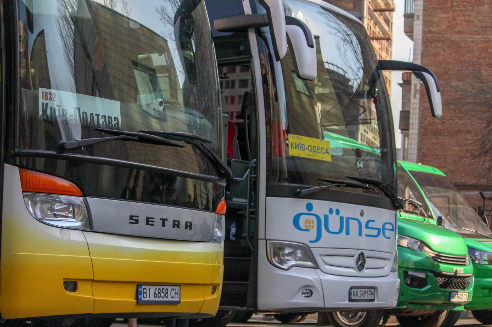 - Компанія «ГЮНСЕЛ» - Mercedes Travego, д.н. АА2491РМ, 2015 року випуску, який обслуговує маршрут Бориспіль - Київ - Одеса.