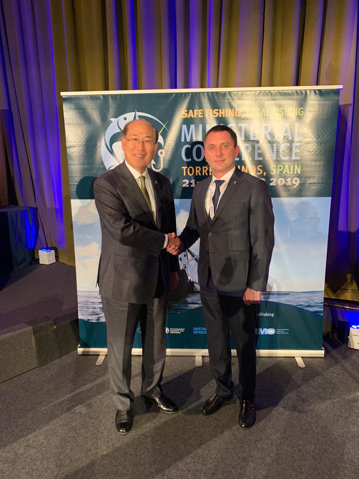 21 жовтня 2019 року, в рамках участі у Міністерській конференції Міжнародної морської організації (ІМО), заступник Міністра інфраструктури Юрій Лавренюк провів зустріч із Генеральним секретарем ІМО паном Кітак Лімом.