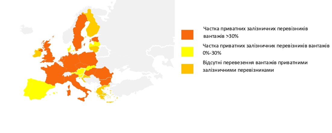 У більшості країн Євросоюзу відбувається лібералізація ринку залізничних перевезень: