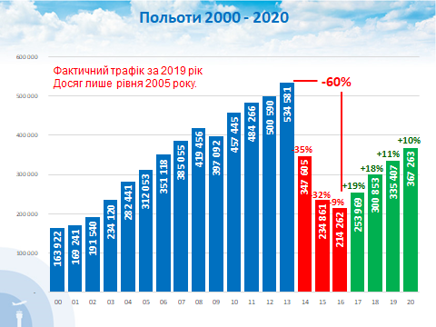 Водночас Украерорух забезпечував і забезпечує належний європейський рівень аеронавігаційного обслуговування та безпеки польотів, працюючи за моделлю цільової собівартості. І це в рамках наявних доходів від обслуговування лише в обсязі 35-40% польотів порівняно з 2013 роком.