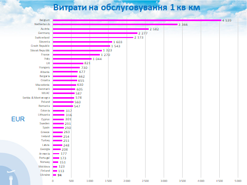 Сьогодні в Україні найнижчий рівень витрат на квадратний кілометр повітряного простору серед всіх країн – членів Євроконтролю. При цьому ми забезпечуємо ідентичний рівень обслуговування та безпеки польотів.