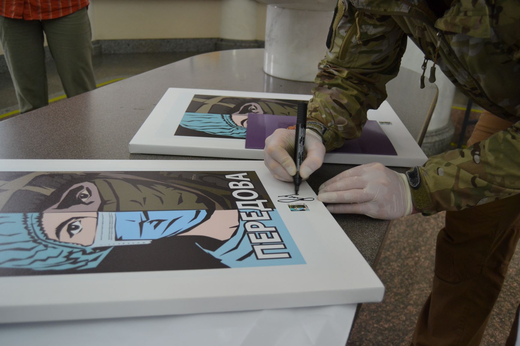 Для ескізу поштової марки було використано роботу відомого харківського художника-ілюстратора Нікіти Тітова «Передова». «Наша країна тримається на тих, хто любить її та захищає, хто жертвує заради неї. Важливо пам’ятати про це і не забувати підтримувати тих, хто на передовій. Ідея малюнка для марки виникла після слів моєї знайомої, яка наголосила, що у лікарів віднедавна свій фронт та своя війна з ворогом», — зазначив Нікіта Тітов.
