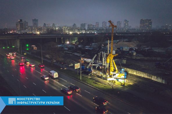 На залізнично-автомобільному мості через Дніпро у місті Києві пробурили й забетонували половину буронабивних паль, необхідних для спорудження лівобережної розв'язки. Роботи тривають у режимі 24/7.