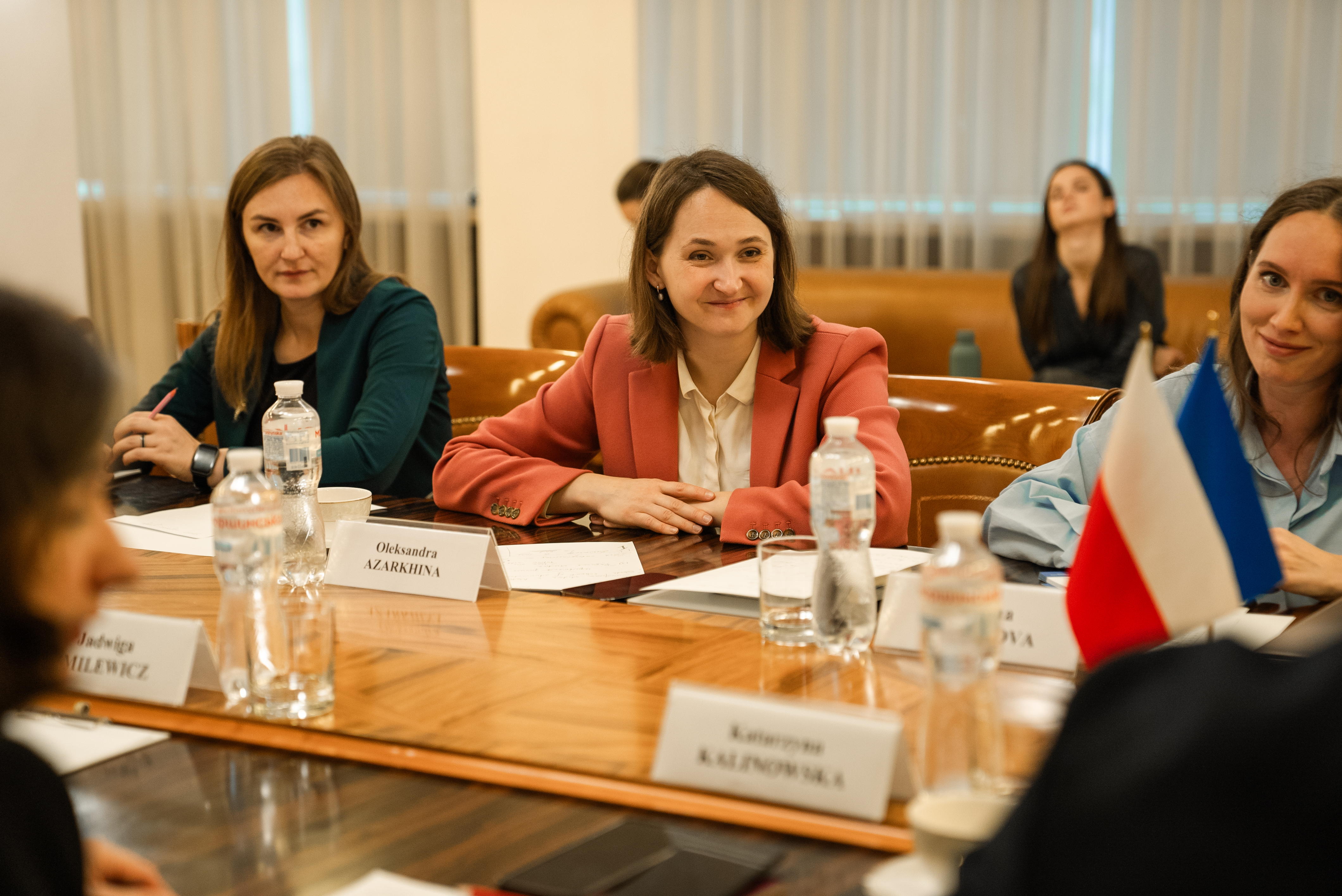 Заступниця Міністра розвитку громад, територій та інфраструктури України Олександра Азархіна зустрілася з Державною секретаркою Міністерства розвитку та регіональної політики Польщі Ядвігою Емілевич. Темою зустрічі було створення спеціального плану дій (white paper) для розв'язання проблем участі польського бізнесу у відбудові України і навпаки – українського бізнесу в Польщі.