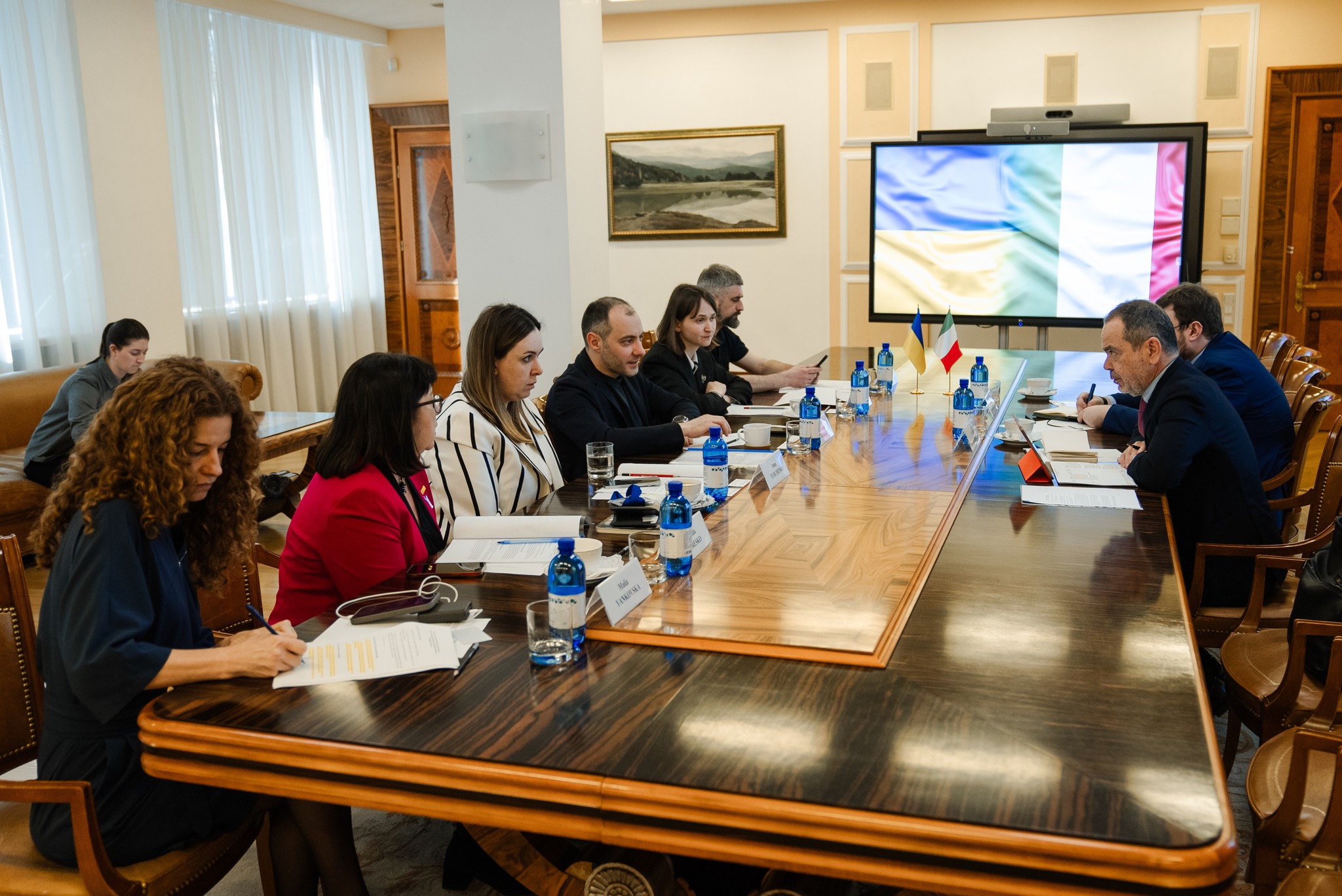 На зустрічі зі Спеціальним представником, координатором Робочої Групи від Італії з питань відбудови та зміцнення стійкості України Давіде Ла Чечіліа команда Міністерства розвитку громад, територій та інфраструктури розповіла про основні пріоритети співпраці. В фокусі – захист та відновлення енергетичного сектору та розвиток співпраці в транспортній галузі.