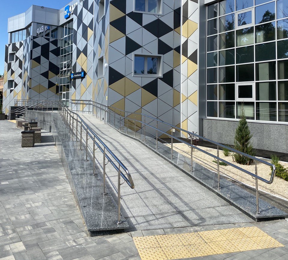 Прикладами облаштування безбар’єрного простору спортивно-видовищний комплекс «Акваарена» у місті Полтава та спортивний комплекс «Колос» у місті Решетилівка Полтавської області.