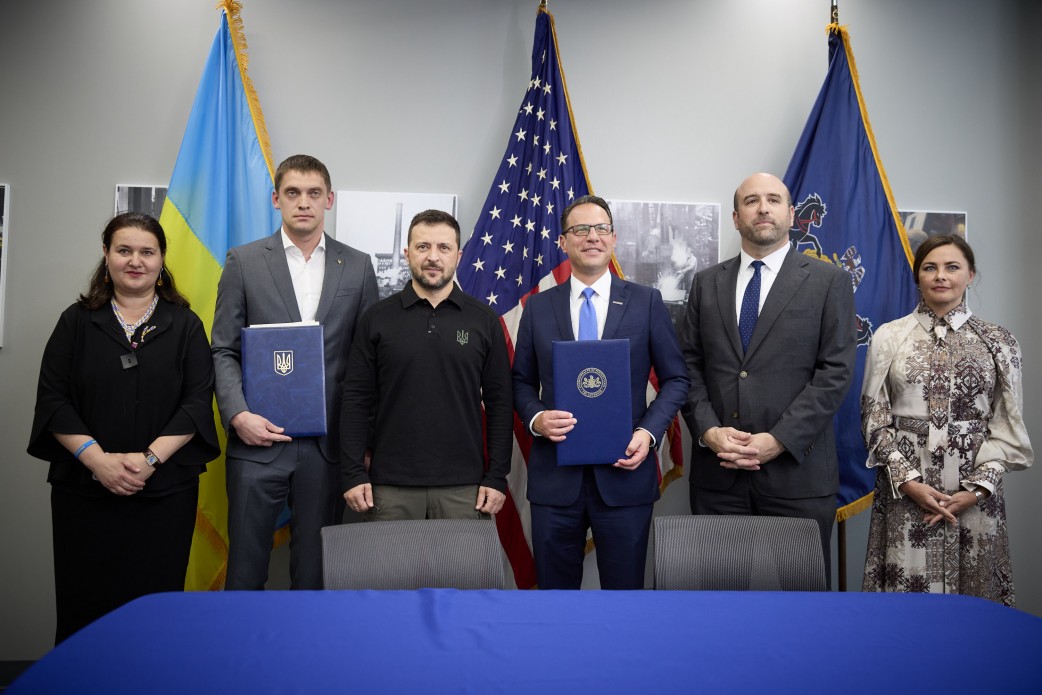 Президент Володимир Зеленський, під час візиту до США, провів зустріч з губернатором штату Пенсильванія Джошем Шапіро, а також сенатором від цього штату Бобом Кейсі та конгресменом Меттом Картрайтом. Сторони домовились про співпрацю між Україною та Сполученими Штатами Америки на регіональному рівні.