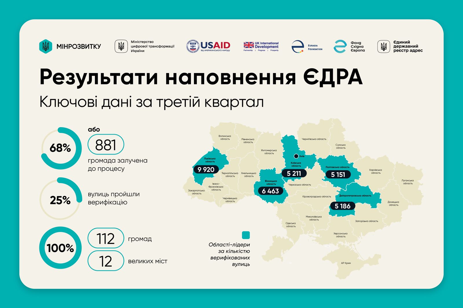 За перші три місяці від початку проєкту по створенню та наповненню Єдиного державного реєстру адрес (ЄДРА) верифіковано 25% вулиць.