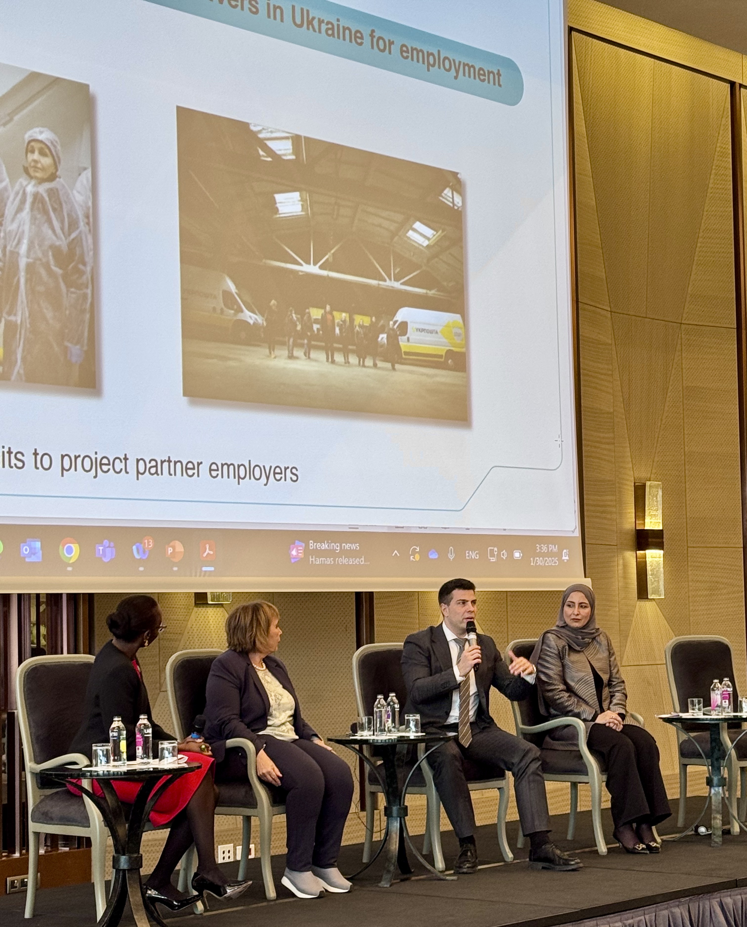 “Наразі за ініціативи Міністерства розвитку громад та територій запущено два проєкти із підготовки водійок вантажівок та автобусів для подальшого працевлаштування. Ці проєкти – відповідь на наслідки вторгнення рф до України та посилення кадрової кризи, особливо у сферах, де традиційно домінували чоловіки. Через це уряд та бізнес вимушені відповідно реагувати на ситуацію на ринку, що у підсумку забезпечити стабільне функціонування логістичних ланцюгів, доставку вантажів та перевезення пасажирів. Реалізація цих проєктів демонструє, що не існує “чоловічих” чи “жіночих” професій, а є навички, якими має володіти фахівець, щоб виконувати ту чи іншу роботу. Наразі ми працюємо над тим, щоб масштабувати відповідні ініціативи та забезпечити сталу систему підготовки та навчання жінок на різні транспортні професії”, – наголосив у своєму виступі Сергій Деркач.