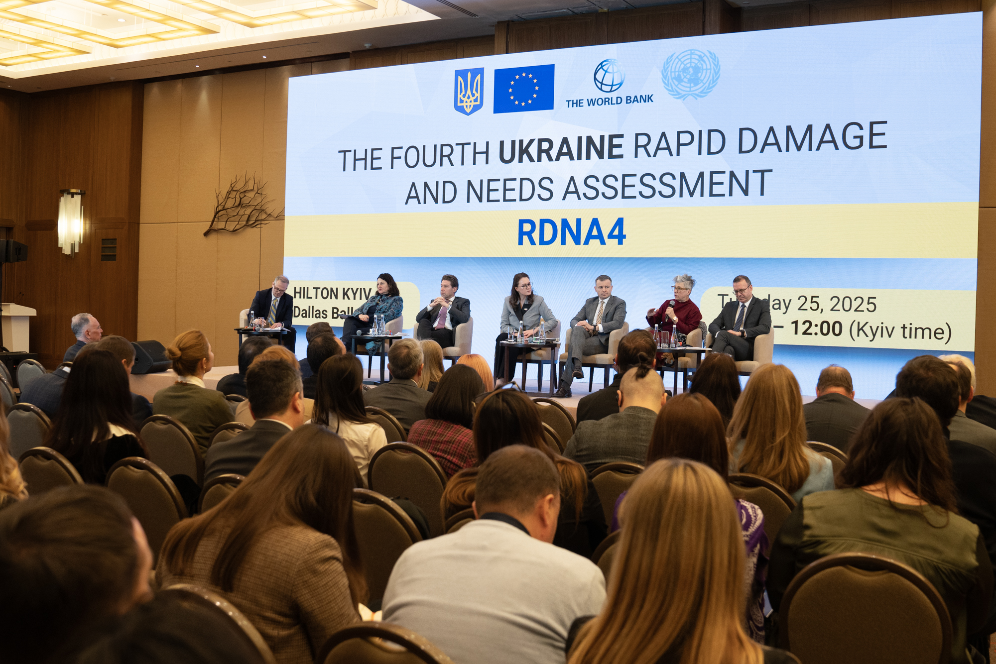 Міністерство розвитку громад та територій України спільно зі Світовим Банком представили результати оцінки збитків і потреб, що виникли внаслідок широкомасштабного російського вторгнення (RDNA4). Презентували звіт Віце-прем’єр-міністр з відновлення України – Міністр розвитку громад та територій України Олексій Кулеба та регіональний директор східноєвропейського напрямку Світового Банку Боб Сом.